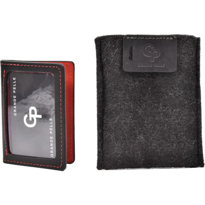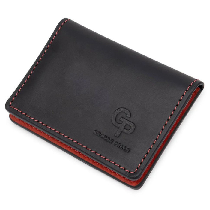 Обложка на права, тех паспорт, удостоверение, чёрно-красный Grande Pelle 21111060 черная с красной внутренней стороной и бордовой ниткой.
