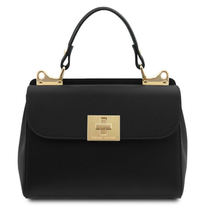 Женская кожаная сумка родом с Италии. Классический дизайн с элегантными замками на клапанах с двух сторон.