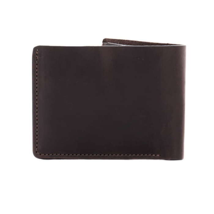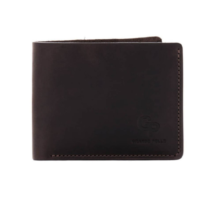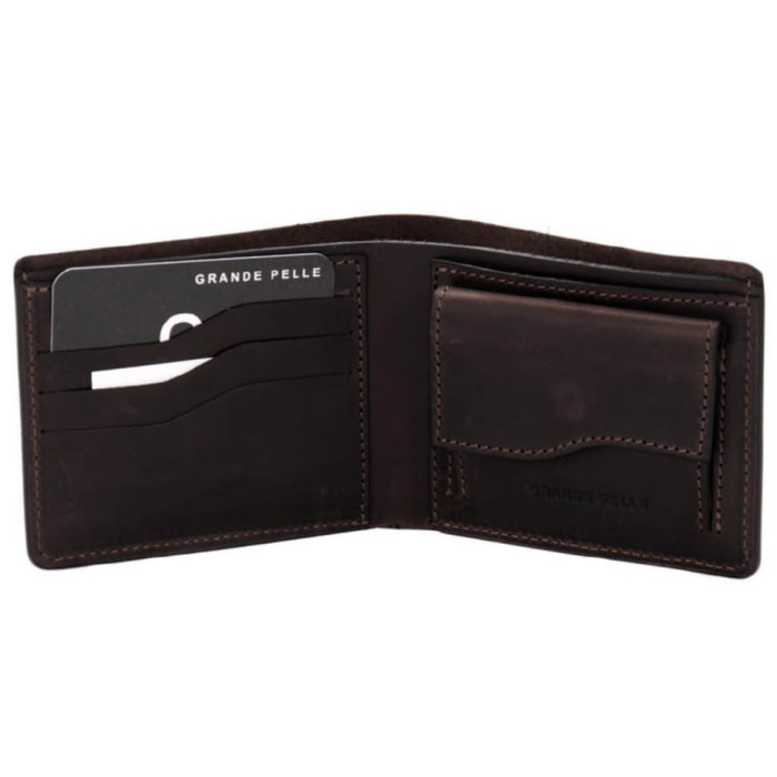 Кожаное портмоне Grande Pelle 506120 мужское двойного сложения (бифолд) Кожа крейзи хорс, матовая фактура, коричневый цвет