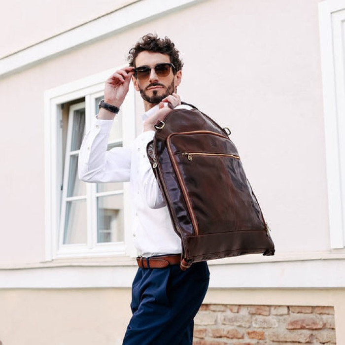 Привлеките к себе внимание со стильным попутчиком джентльмена, в котором достаточно места как минимум для 2 костюмов. Теперь вы можете путешествовать с костюмом без складок и не носить его отдельно. Идеальная от начала до конца, эта сумка для одежды из натуральной кожи выделит вас в каждой деловой поездке.