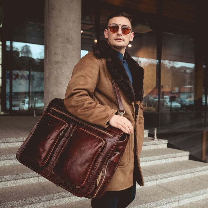 Кожаный портплед, гармент, сумка для костюма - The Big Sleep - Time Resistance 5221801 Дизайн портпледа коричневого Time Resistance 5221801 Привлеките к себе внимание со стильным попутчиком джентльмена, в котором достаточно места как минимум для 2 костюмов. Теперь вы можете путешествовать с костюмом без складок и не носить его отдельно. Идеальная от начала до конца, эта сумка для одежды из натуральной кожи выделит вас в каждой деловой поездке.