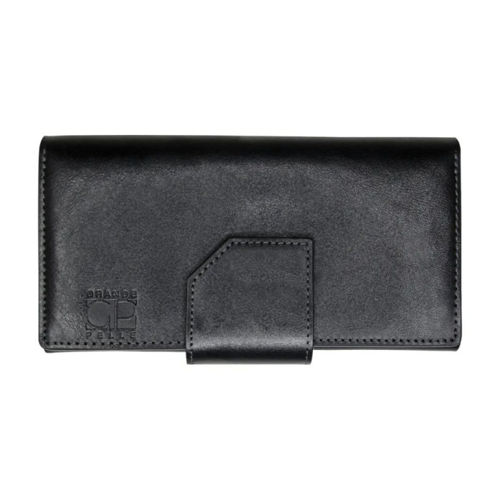 Портмоне женское кожаное большое с хлястиком на магните. Классический черный цвет лицевой кожи наппа.