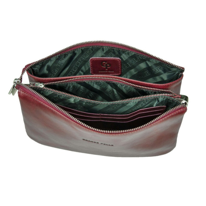 ? 6 отделений для визиток и кредитных карт расположенных на внутренней стенке клатча;