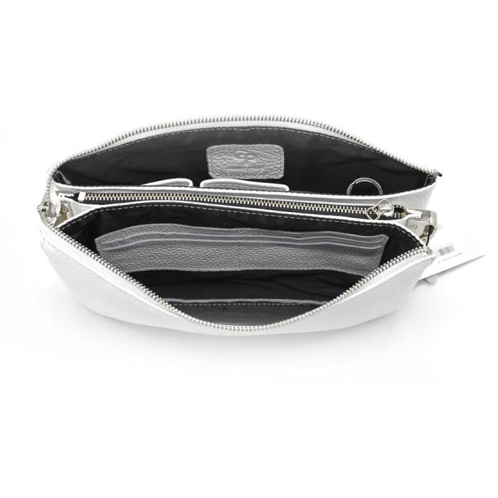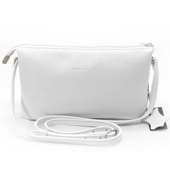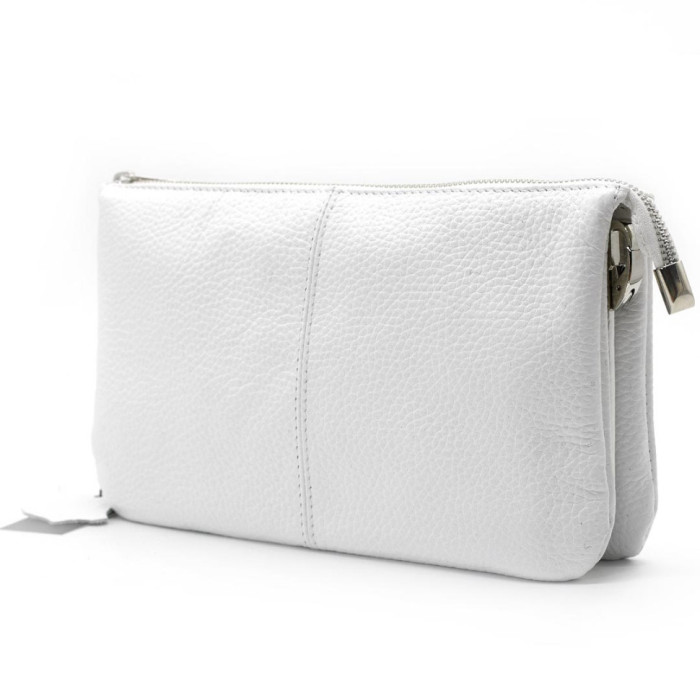 Женский клатч с ремешком через плече, белый Grande Pelle 70570201 белый флотар Сумка выполнена из натуральной кожи. Ее формат - это удобство и функциональность, продумано с каждым отделением: