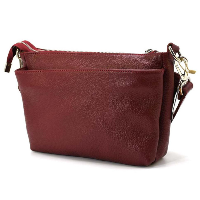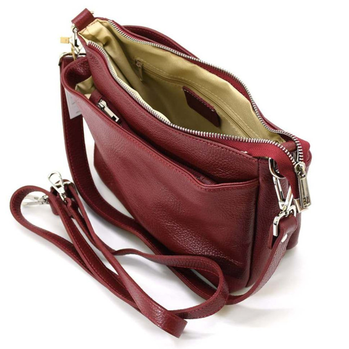 О товаре Женская сумочка Virginia Conti выполнена из натуральной кожи.; Особенности: имеет три отделения на молнии, внутри боковой карман горизонтального типа на змейке. Подкладка - текстиль. Фурнитура - металл. В комплекте два съёмных ремешка для носки на плече.