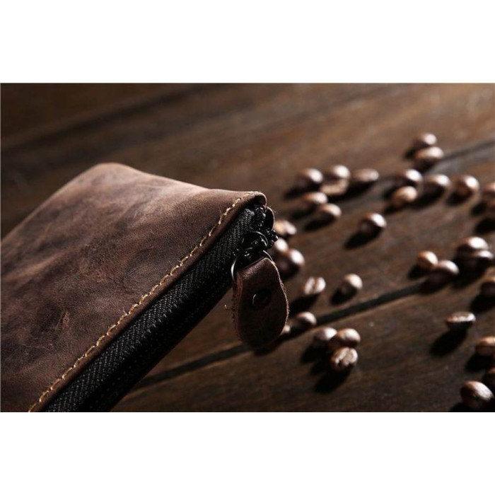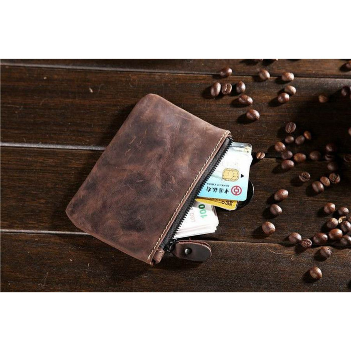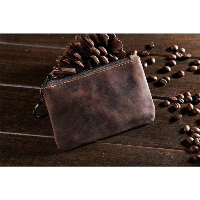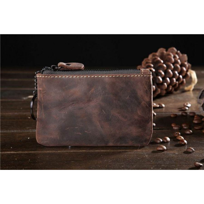 Одно большое отделение на молнии. Кольцо для ключей на толстой цепочке.