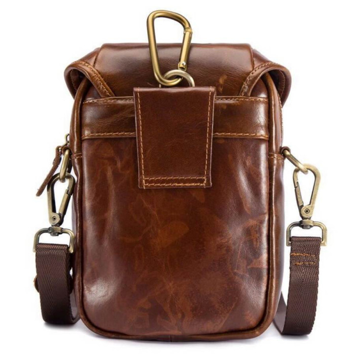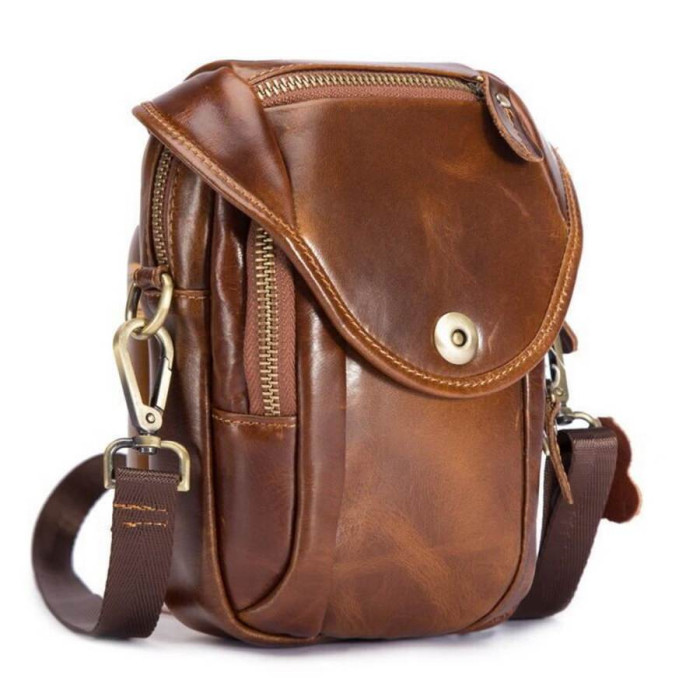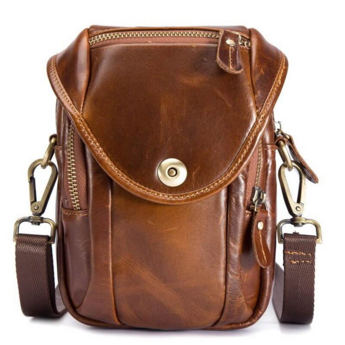 Универсальная сумка через плечо или на пояс bx2018 Bexhill из натуральной телячьей кожи. Модель может носиться как напоясная сумка. Достаточно снять плечевой ремешок и пристегнуть сумку к брюкам при помощи карабина или продеть ремень брюк через специальную кожаную петлю изделия. Аксессуар имеет одно отделение с кармашком внутри,и застегивается на молнию. Лицевая сторона украшена карманом с молнией и еще одним маленьким кармашком открытым. Сверху сумка закрывается клапаном с кнопкой, на котором также есть маленький карманчик.