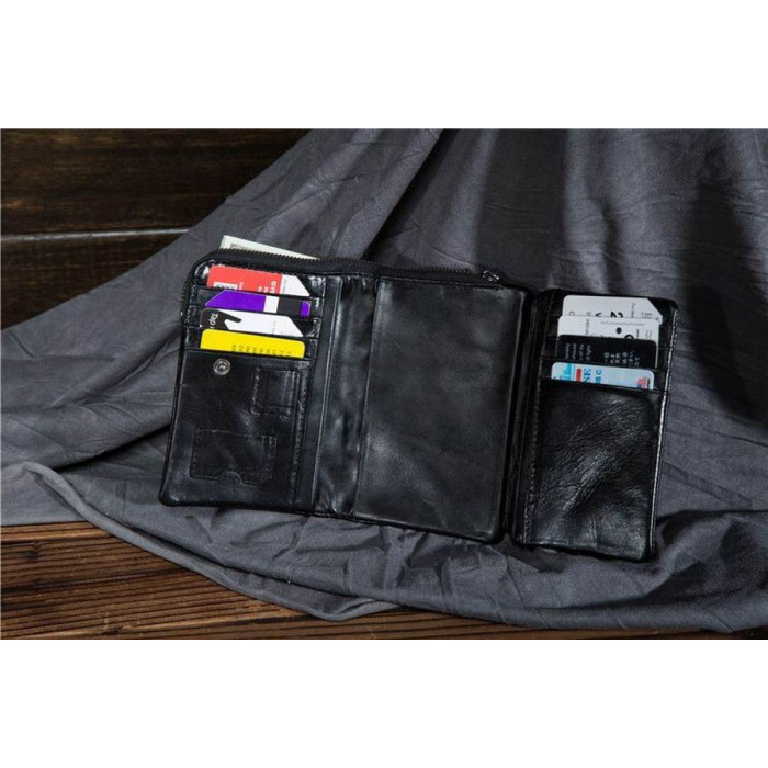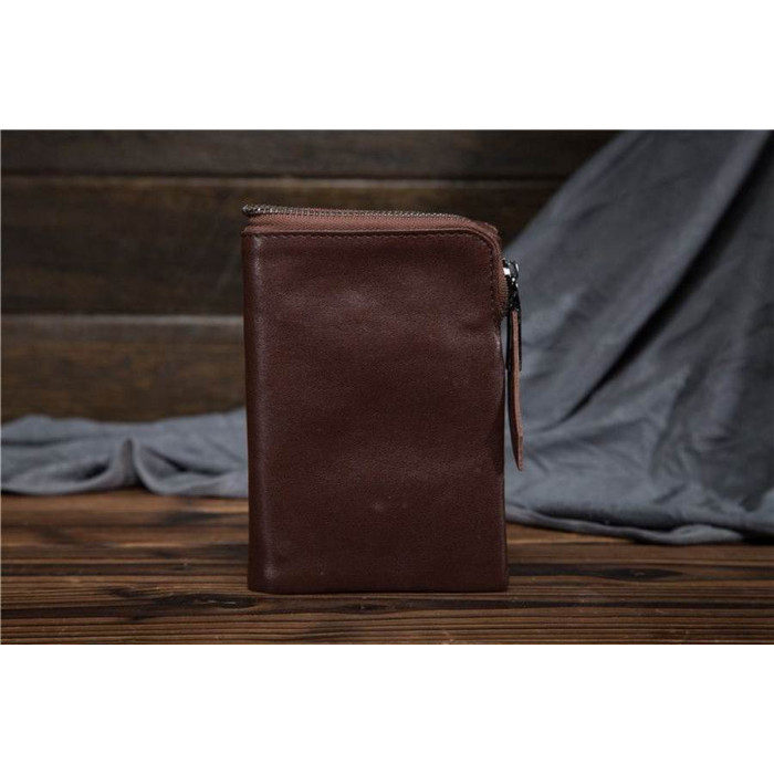 Аксессуар выполнен из гладкой телятьей кожи и имеет глянцевую поверхность. Раскрытие книжечкой, 3 отсека. Одно основное отделение для купюр, расположено отдельно и закрывается молнией. Внутри много дополнительных отделений до карт, документов, прав и карточек памяти.