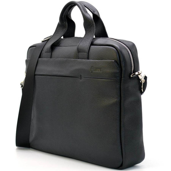 Кожаная сумка для ноутбука TARWA FA-0250-4lx из кожи флотар черного цвета. Размеры сумки 40*29*7см, вмещает ноутбук или макбук 13-14 дюймов. Съемный ремень через плечо.