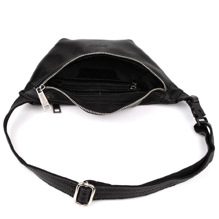 Сумка бананка снова в моде! И это не удивительно, ведь она очень компактная и простая в использовании. Ее можно носить на поясе или через плечо по диагонали. Основное отделение закрывается на молнию, внутри есть большой карман, например, для смартфона. И еще остается место для портмоне, наушников и очков. На обороте предусмотрен карман на молнии. Материалом служит качественная говяжья кожа.
