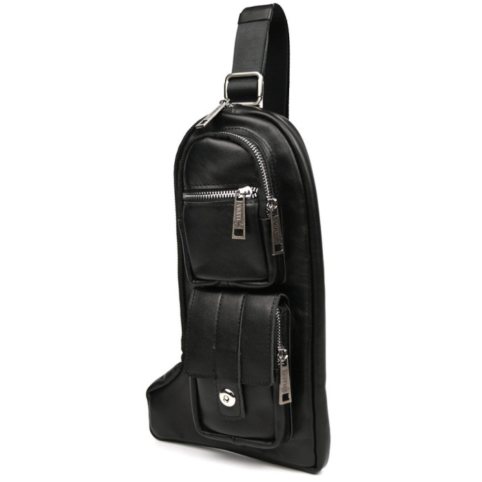 Удобный и практичный аксессуар, изготовлен из натуральной телячьей кожи. Стильная модель идеально подойдет для использования на каждый день. Аксессуар имеет одно отделение, внутри которого есть врезной карман на молнии. Множество передних карманов на молнии и магнитах