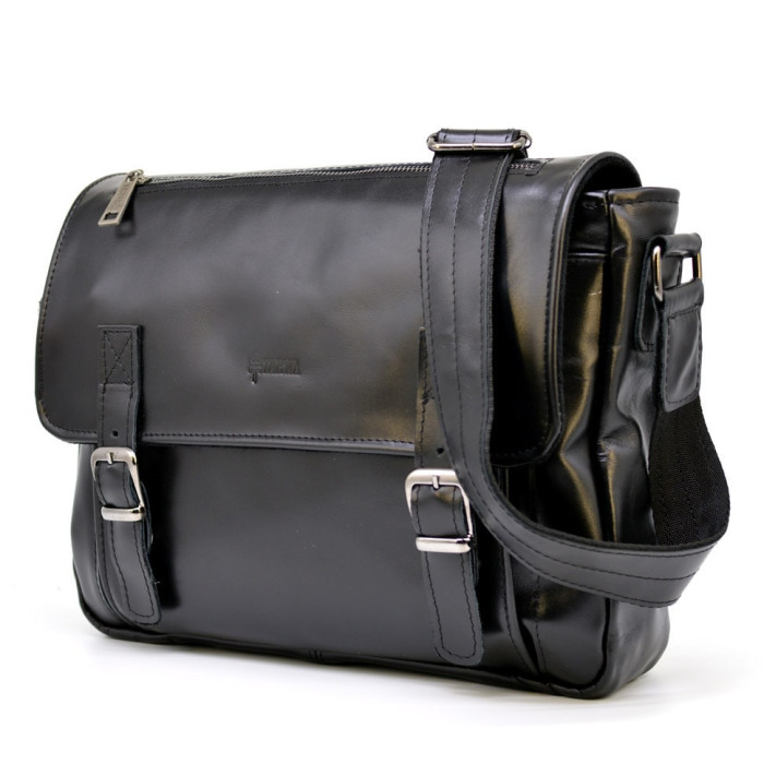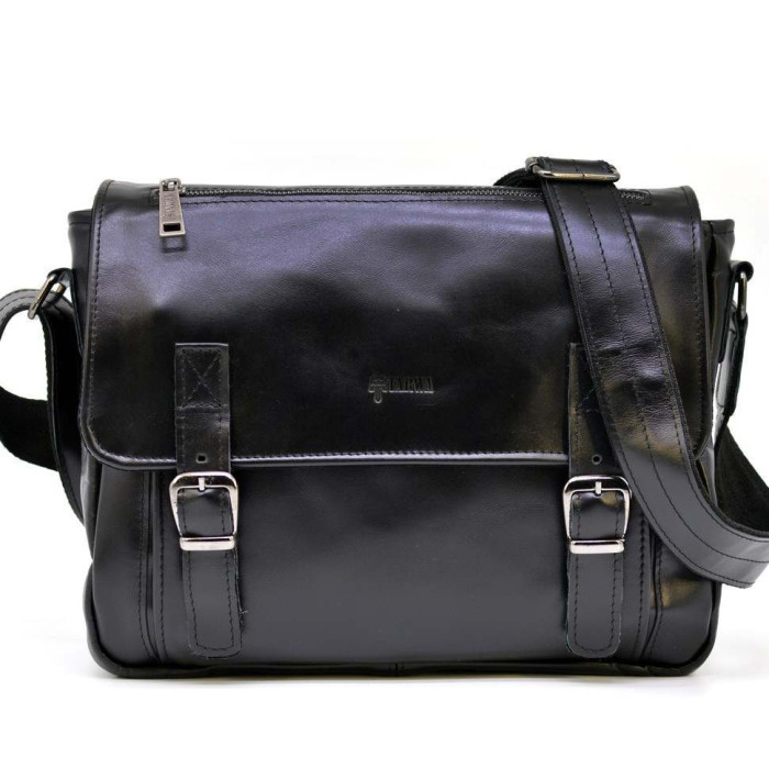 Наплечная кожаная сумка с ручкой из кожи Наппа GA-6045. Оптимальный размер, два плоских кармана на лицевой поверхности под кожаным клапаном, карман на молнии на клапане, карман на задней части сумки, также имеется маленькая кожаная ручка сверху и сзади на клапане сумки через плечо TARWA GA-6045