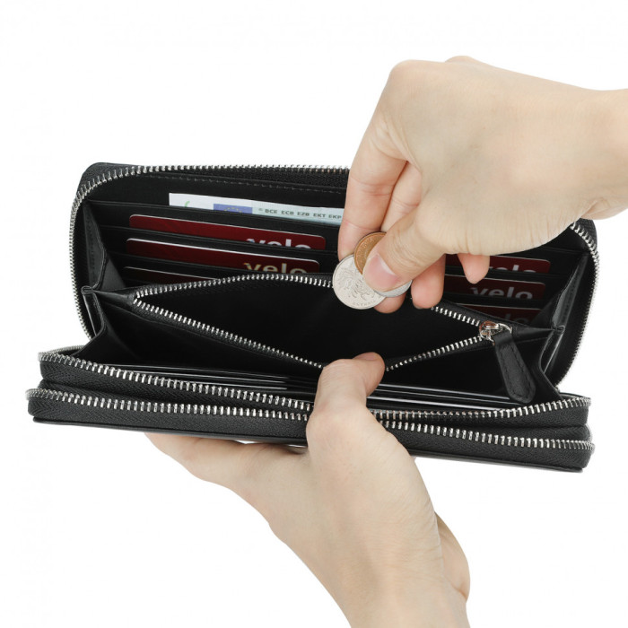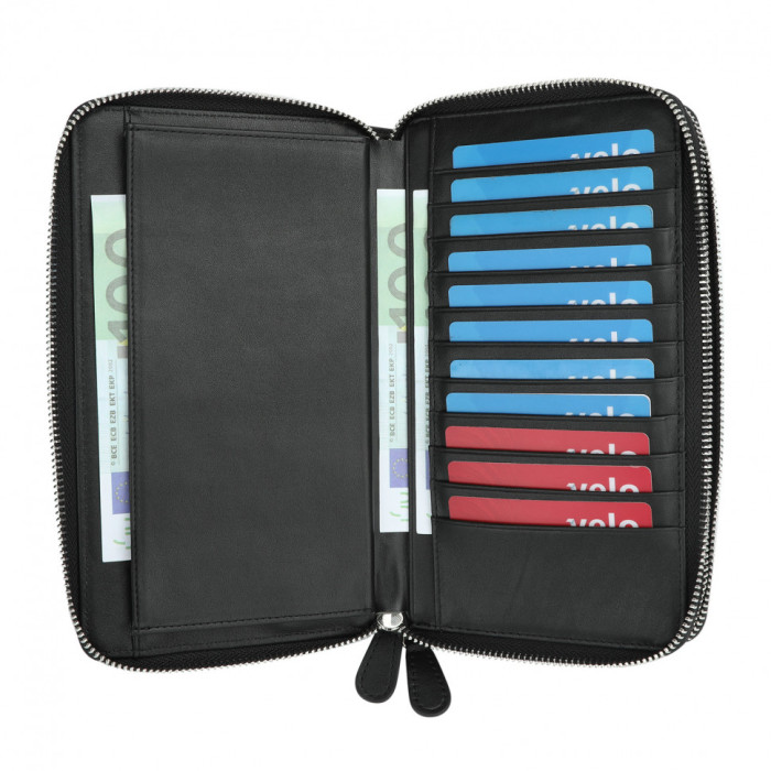Внутри несколько отделов под купюры, множество отделов под карточки.