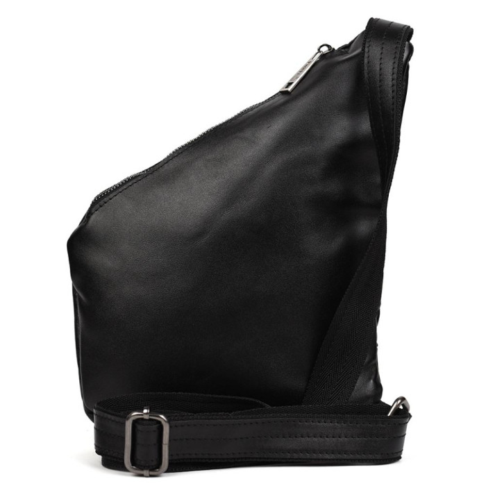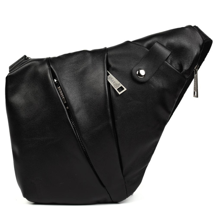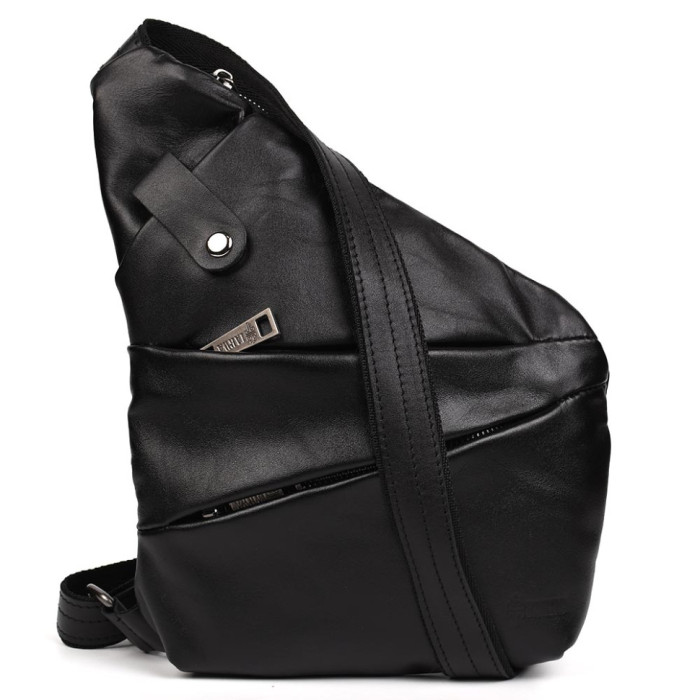Слинг необычной формы, и максимальной функциональностью при носке. Будет полезна в поездках и путешествиях. Изделие имеет одно вместительное отделение с молнией. Лицевую сторону сумки украшают два горизонтальных кармана с молниями, также сверху есть маленький карманчик с магнитной кнопкой. Данную модель можно позиционировать и как мини-рюкзак на одно плечо. Моно-шлейка выполнена из кожи с текстильной основой.