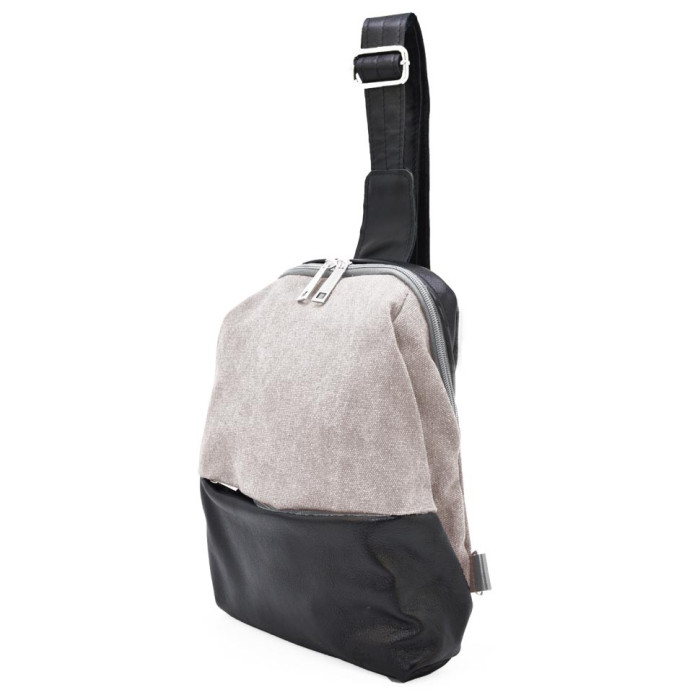 Мужской слинг через плечо, нагрудная сумка из кожи и канвас TARWA GAa-1905-3md. Шлейка перестегивается под левшу или правшу за 2 секунды путем перещелкивания карабина. Мягкая форма изделия, подстраивается под содержимое и ваши потребности. Интересное сочетание натуральной черной кожи наппа и канвас цвета кофе