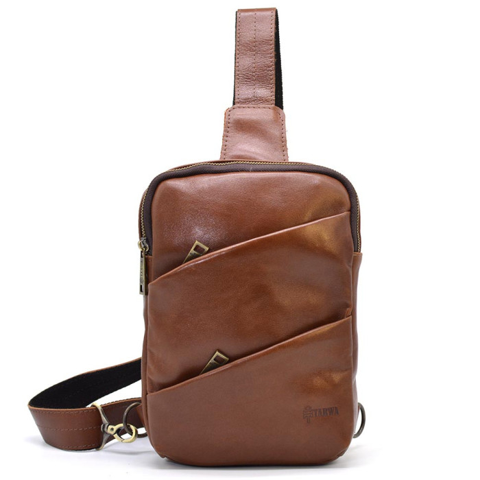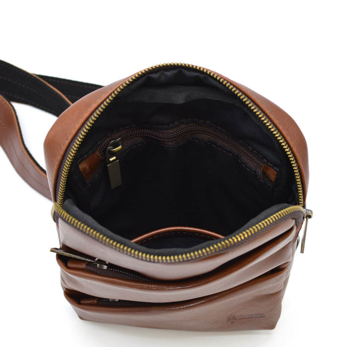 Мини-рюкзак мужской на одну шлейку GB-0604-3md TARWA. Удобный и практичный аксессуар, изготовлен из натуральной телячьей кожи. Стильная модель идеально подойдет для использования на каждый день. Аксессуар имеет одно отделение, внутри которого есть врезной карман на молнии.