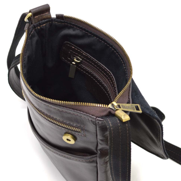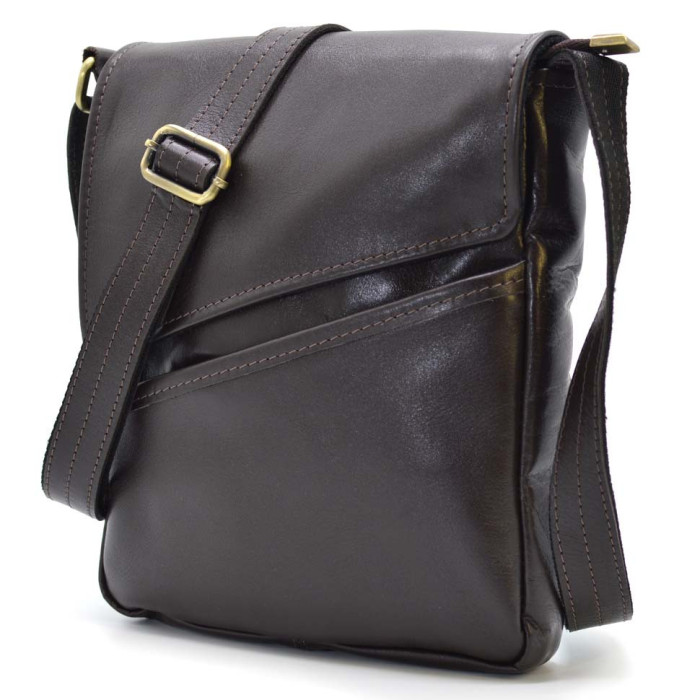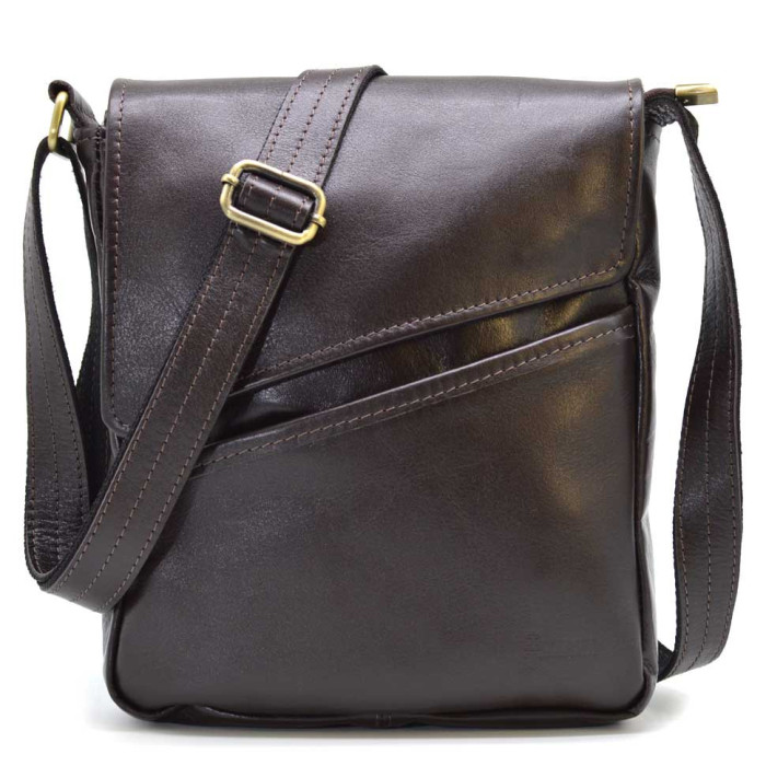 Мужская кожаная сумка через плечо GC-1302-3md TARWA коричневая с косым клапаном.