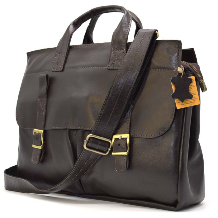 Красивая деловая кожаная сумка с отделом для ноутбука GC-7107-3md, для мужчин и не только, женщинам также она придется по вкусу. Тканевая подкладка, отсеки для ноутбука, открытые и карманы на молнии. Металлическая молния. Кожаный ремень через плечо с регулировкой длинны.