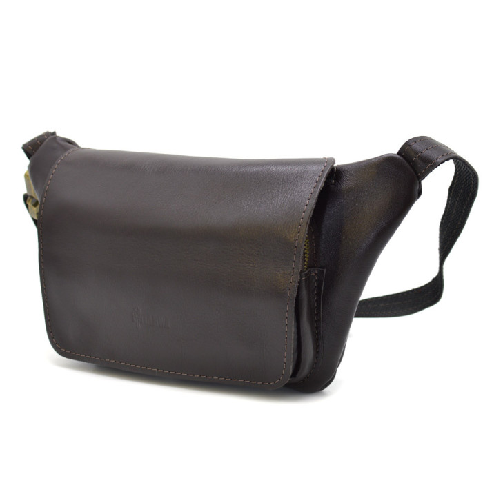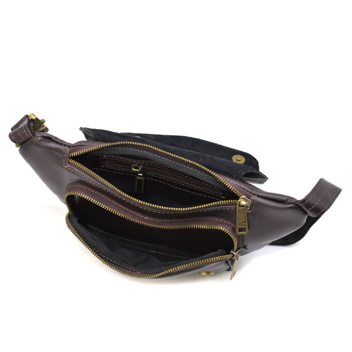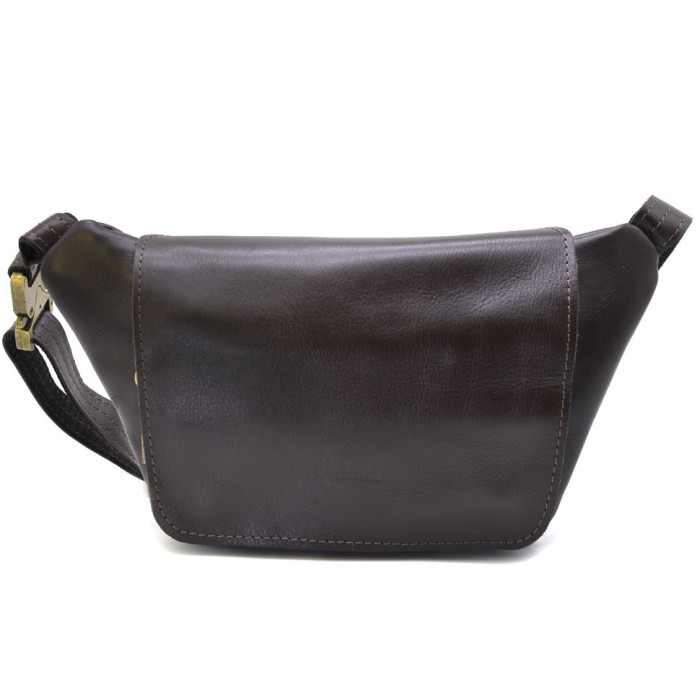 Кожаная бананка напоясная сумка коричневый флотар GC-8145-3md TARWA. Ваши документы, деньги и телефоны под рукой в любой ситуации. Гладкая коричневая кожа наппа и фурнитура цвета антик. Три кармана, два из них на молнии на этой напоясной сумке и один передний на магнитных кнопках с клапаном, тканевая подкладка внутри, тактический быстросъемный фастекс.