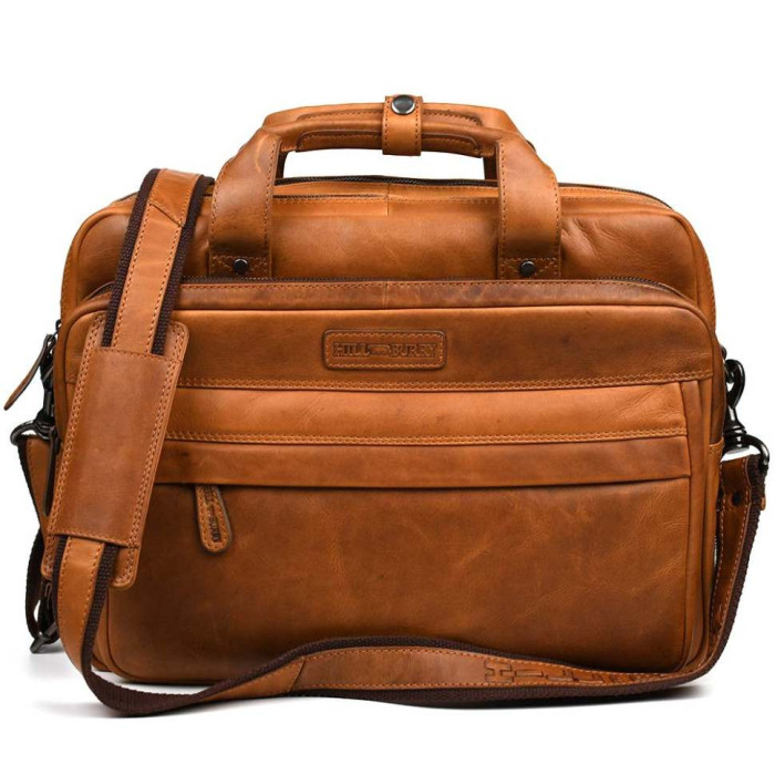 Большая кожаная сумка для ноутбука 17 дюймов Hill&Burry HB4075B коньячная Сумка для большого ноутбука и большого количества вещей. Состоит сумка Hill&Burry HB4075B из трех больших отделений на молниях.