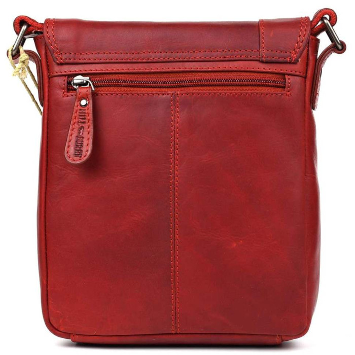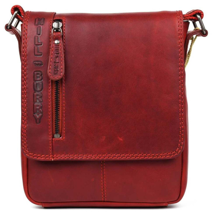 Итальянский бренд, кожа растительного дубления. Кожаная сумка через плечо с клапаном в эксклюзивном красном цвете HILL BURRY 6154.