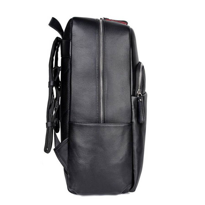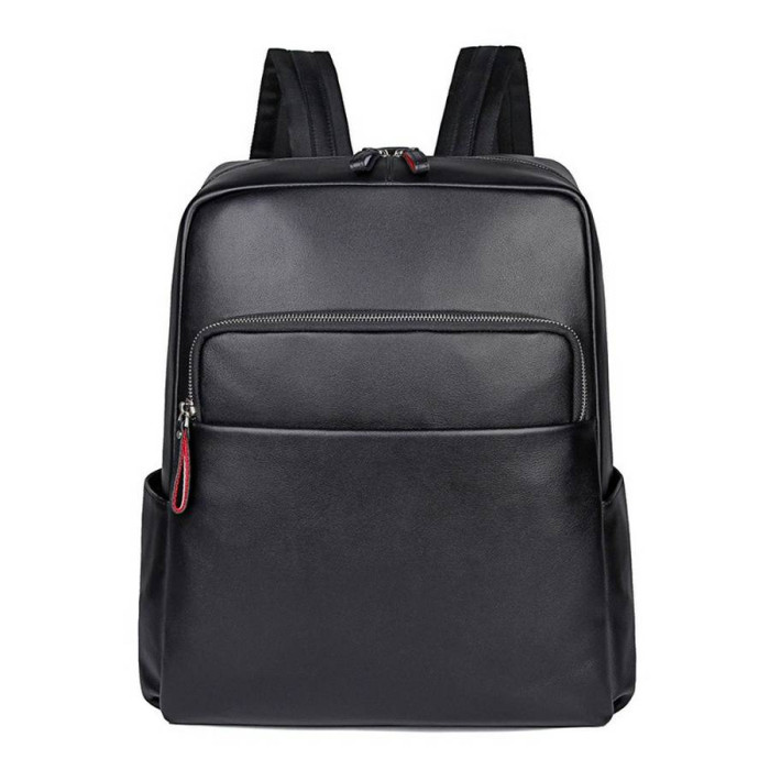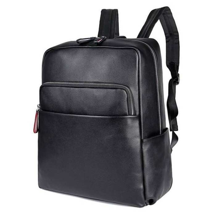 Мужской рюкзак из натуральной телячьей кожи высшего сорта JD2753A от бренда John McDee. Изделие отличается прекрасным внешним видом и надежностью. Рюкзак на одно отделение, внутри которого есть мягкий отсек с липучкой для ноутбука до 15", а также врезной большой карман на молнии. Снаружи, на лицевой стороне аксессуара располагаются два огромных кармана: один с молнией, в котором можно разместить документы формата А4, а второй застегивается на магнитную кнопку. По обеим сторонам, на торцах изделия имеются маленькие плоские кармашки для всякой мелочи. Рюкзак оснащен маленькой кожаной ручкой сверху , благодаря чему его можно переносить в руке. А широкие шлейки (кожа+текстиль) обеспечат комфортную носку на спине. Спинка "дышащая" со специальной перфорацией из текстиля. Лаконичный дизайн изделия привлекает своей простотой. Данный аксессуар будет полезен как в повседневной носке на работу или учебу, так и для поездок - вместительность рюкзака позволит взять с собой все необходимое.