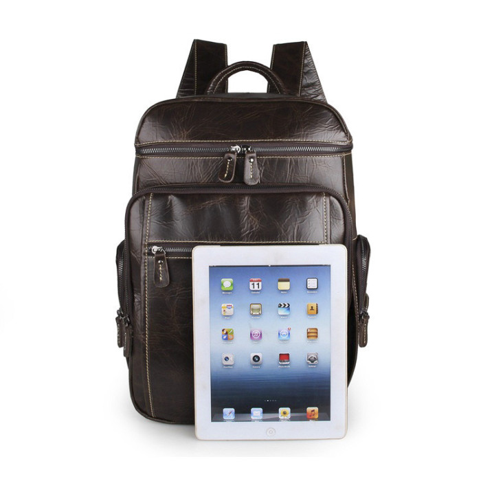 Материал рюкзака - натуральная 100%: телячья кожа Внутри текстильная подкладка Фурнитура - серебро Наружная застежка - молния на основном отделении, молнии на карманах Внутри карманы на молнии, карман для портмоне и телефона На лицевой стороне два кармана на молнии, боковые карманы на молнии Полноценное мягкое 15" отделение для ноутбука Двойные кожаные шлейки, удобная ручка для ношения Может использоваться как урбан рюкзак, городской рюкзак, рюкзак кожаный для ноутбука
