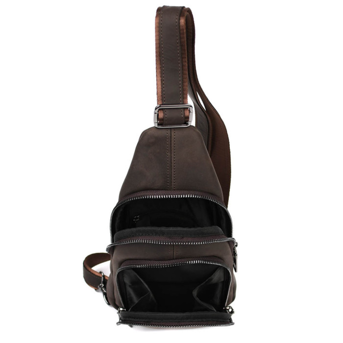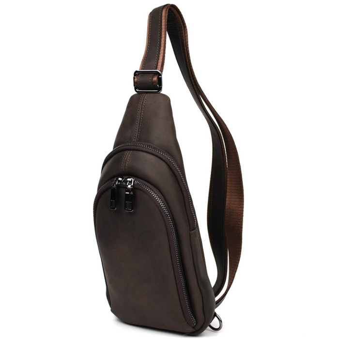 Мужской кожаный рюкзак слинг Limary Lim-181RC крейзі хорс - кожаный рюкзак-слинг ("косуха") в сдержаном классическом дизайне.