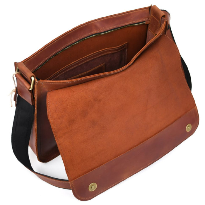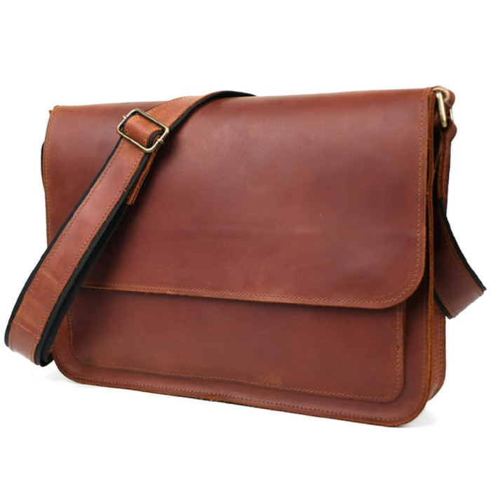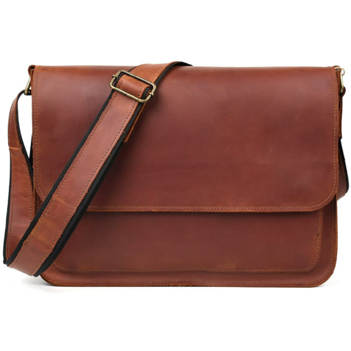 Кожаная мусжкая сумка через плечо (мессенжер) Limary из натуральной лошадиной кожи крейзи хорс. Закрывается клапаном на магнитах, основное отделение закрывается на молнию.