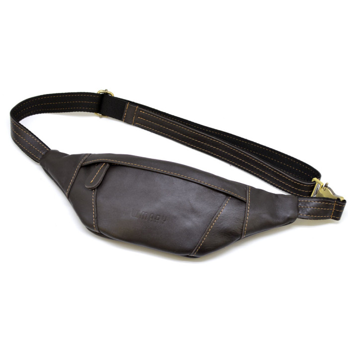 Коричневая (кофейная) напоясная сумка, кожаная бананка (кожа наппа (гладкая, мягкая, полуглянцевая кожа высшего сорта)) производства Украина по доступной цене LIMARY Lim-525GC