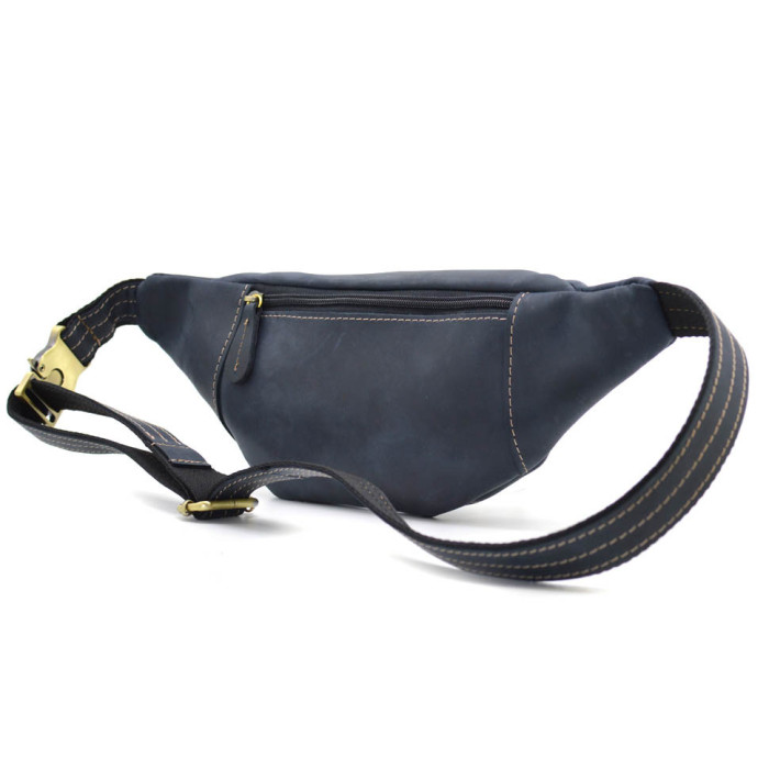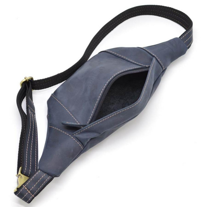 Сумка поясная, кожаная бананка (крейзи хорс кожа) производства Украина по доступной цене. Поясная кожаная бананка LIMARY Lim-525RK синяя