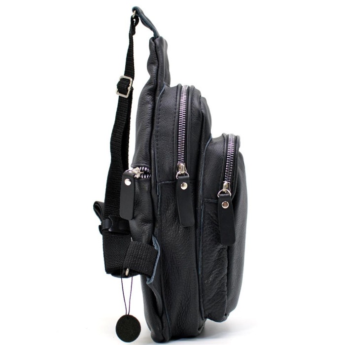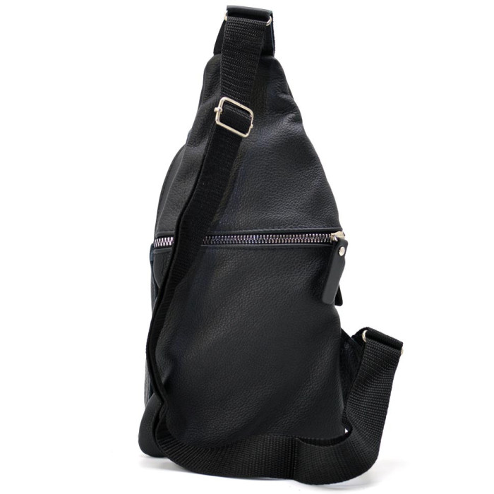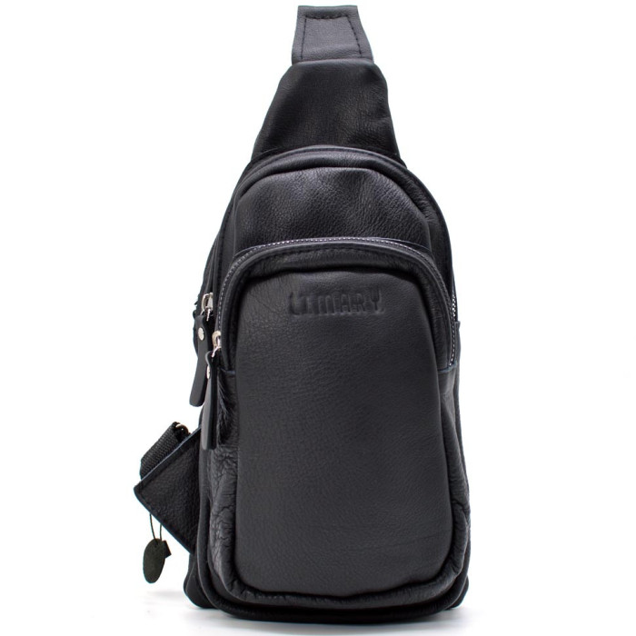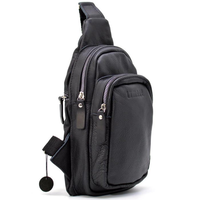Мужской кожаный рюкзак слинг Limary LIM-SL13 из черной кожи флотар