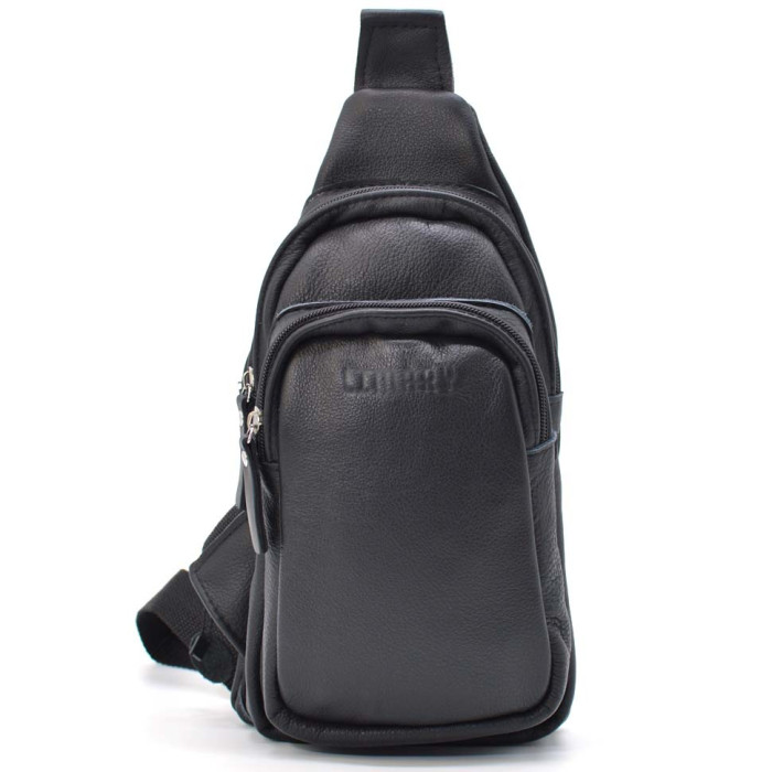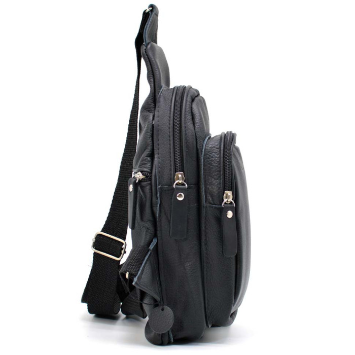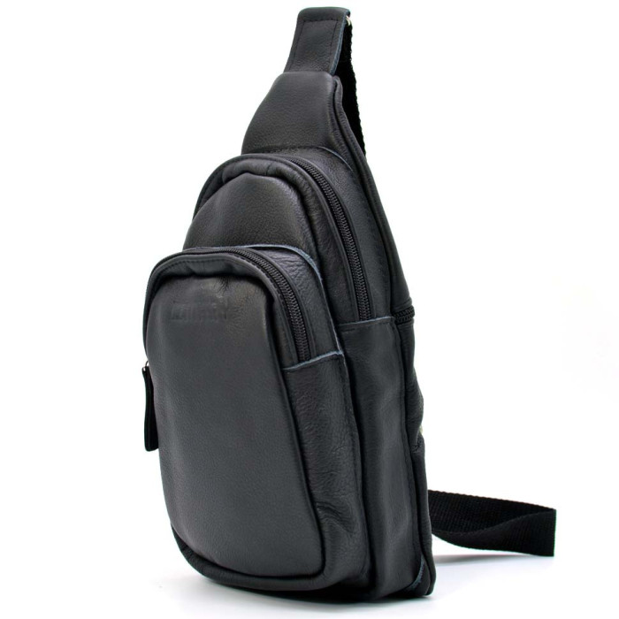 Мужской кожаный рюкзак слинг Limary LIM-SL15 из черной кожи флотар