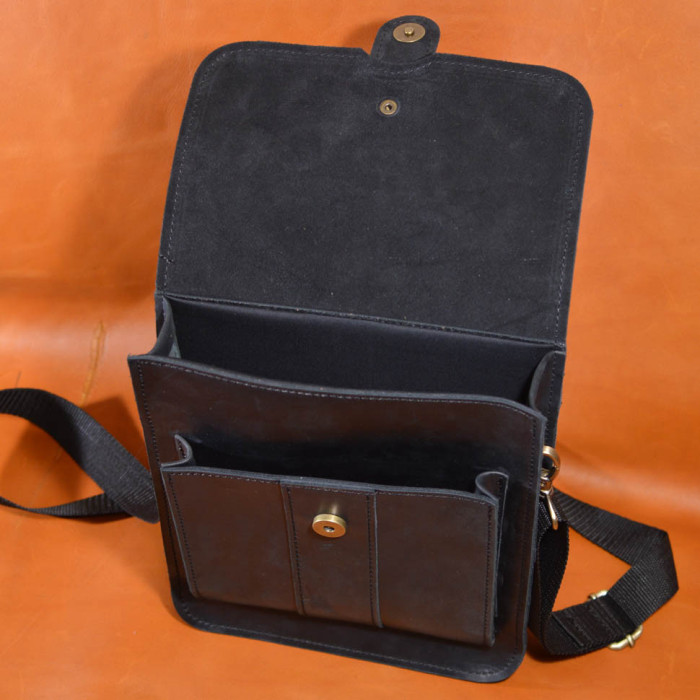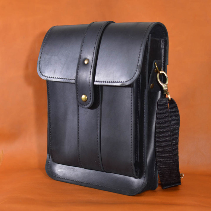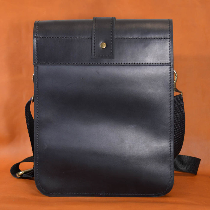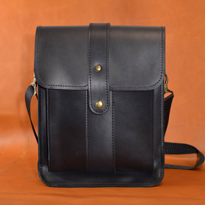 Мужская кожаная сумка через плечо из лошадиной кожи черного цвета LIMARY lim0123ra. Размеры сумки 22*28*5см, легко вмещает документы формата А5. Закрывается на клапан с магнитом. Внутри продублирована тканевой подкладкой. Передний накладной карман.
