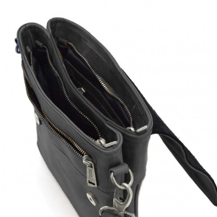 Сумка через плечо мужская кожаная с клапаном на 2 отделения из черной кожи Крейзи Хорс.