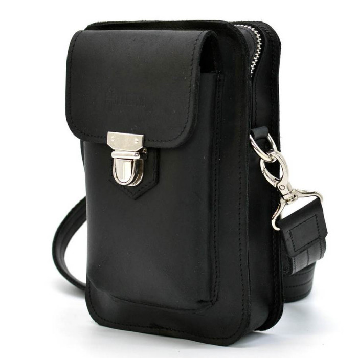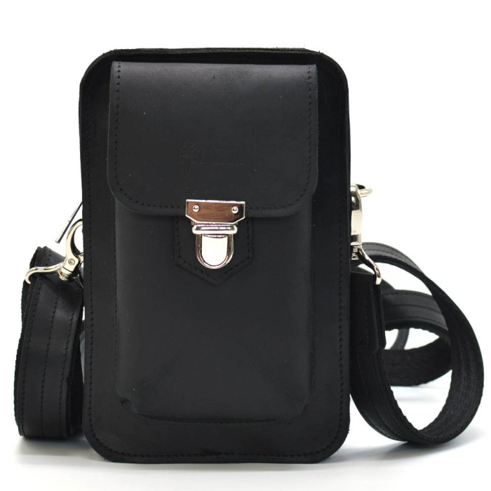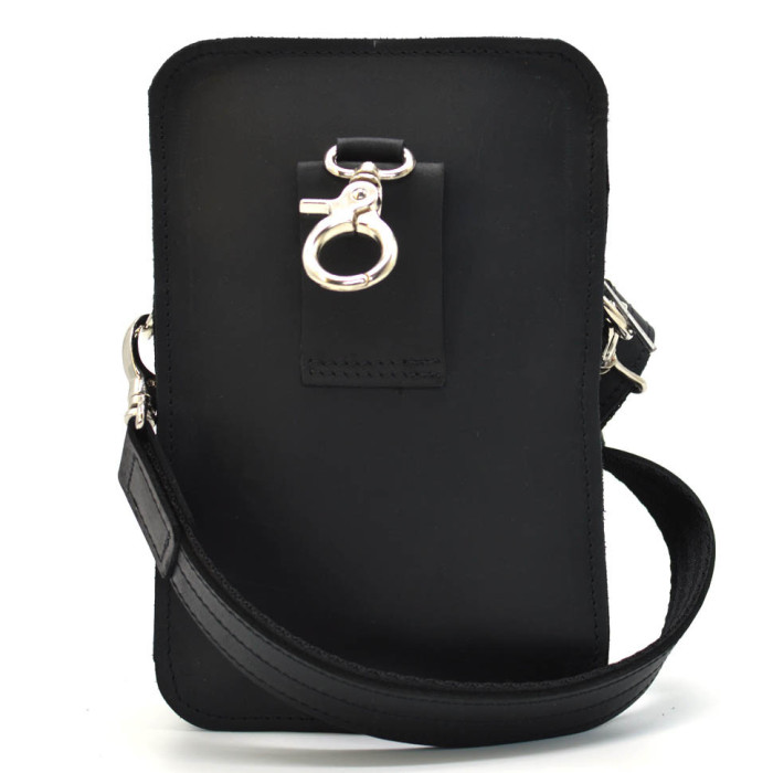 Сумка чехол через плечо, поясная сумка TARWA RA-0075-3md из кожи Crazy Horse. Кожаная сумочка на пояс из толстой лошадиной кожи. Будет востребована для любителей носки смартфона на поясе или на петле джинс. Внутри кожаная отделка. Черная нитка