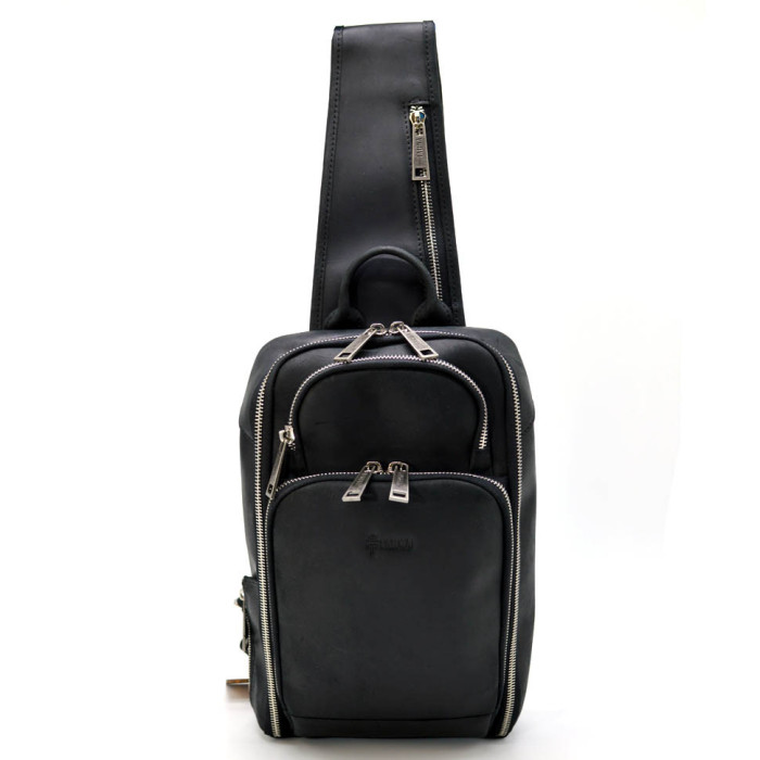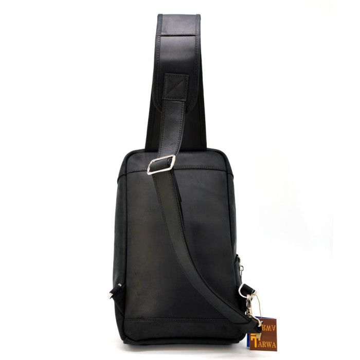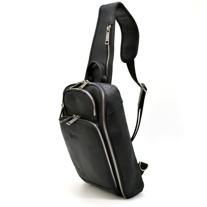 Кожаный рюкзак на одно плечо, рюкзак-слинг TARWA RА-0910-4lx. Стильный аксессуар изготовлен из натуральной кожи Crazy horse, в черном цвете. Рюкзак предназначен для повседневного использования как пешком, там и на автомобиле. Его можно взять с собой в поездку.