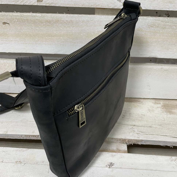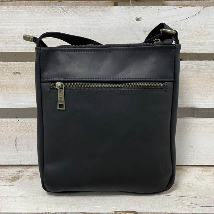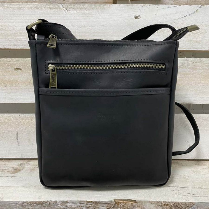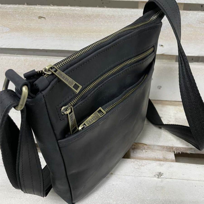 Мужская кожаная сумка через плечо RA-1300-3md TARWA, из натуральной лошадиной черной кожи с матовой фактурой и фурнитурой цвета антик.