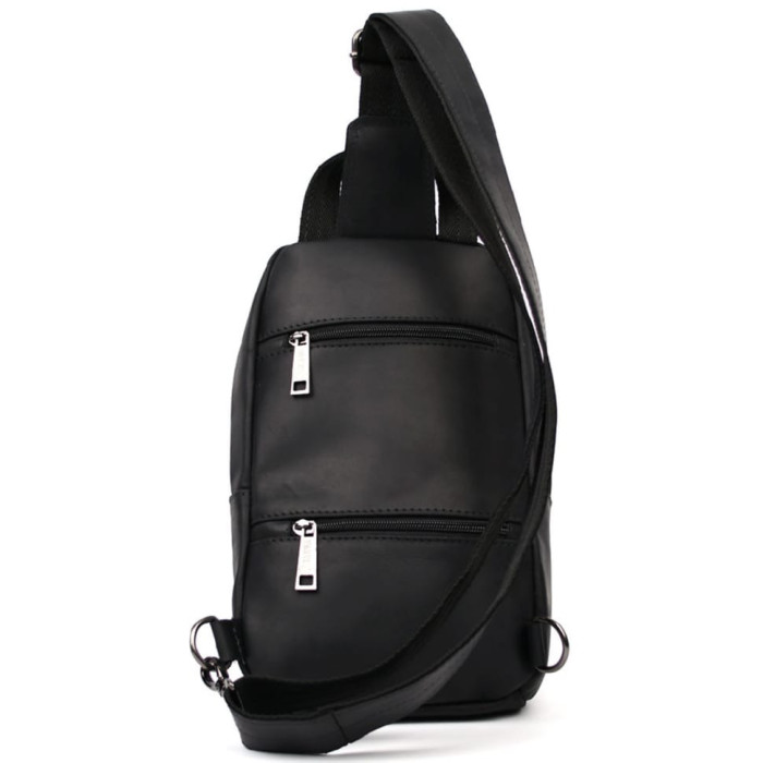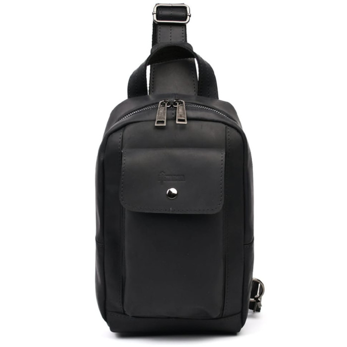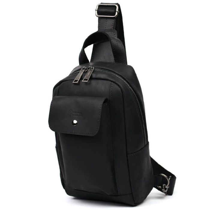Мужской слинг рюкзак кожаный ТАРВА 6040 изготовлен из лошадиной кожи черного цвета.