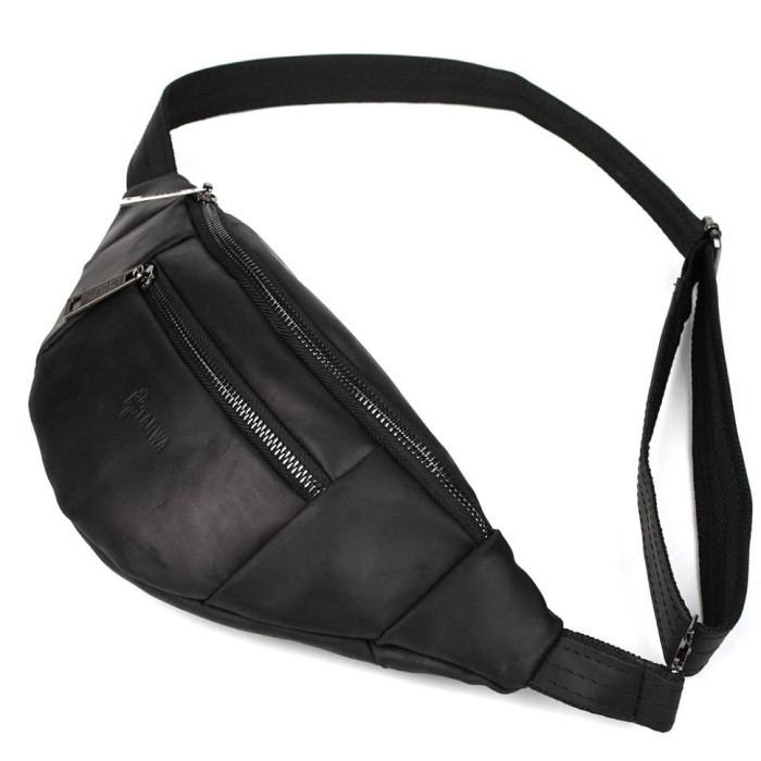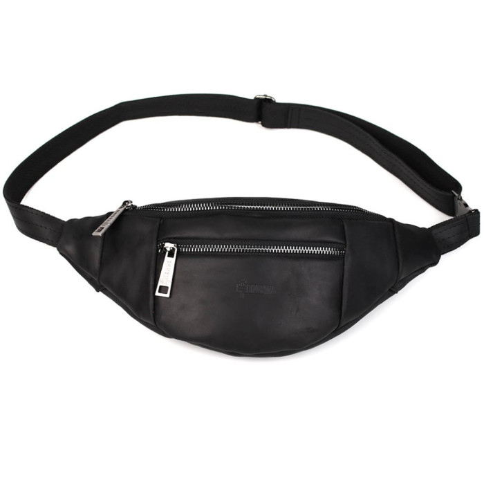 Кожаная бананка 8040 от TARWA пошита таким образом, что имеет два основных отделения: переднее объемное и заднее плоское для телефона или документов.