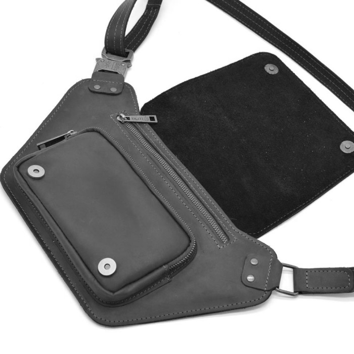 Бананка имеет основной отдел с кармашком внутри. Также один объемный карман, прямоугольной формы на молнии для хранения телефона, кошелька, документов. На задней стороне есть врезной карман с молнией. Модель имеет логотип бренда на лицевой стороне на клапане. Ремешок напоясной сумки 8153 выполнен из кожи и регулируется по длине. Фурнитура металлическая, цвета антик. При носке приобретает форму индивидуально под пользователя.