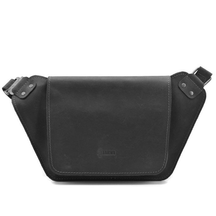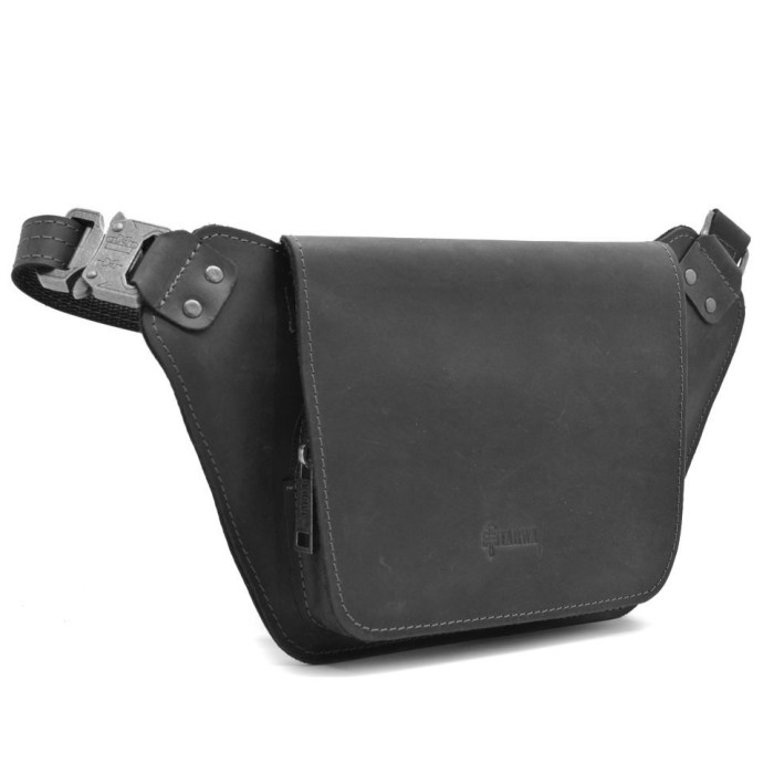 Кожаная бананка напоясная черная матовая кожа RA-8127-3md TARWA. Ваши документы, деньги и телефоны под рукой в любой ситуации. Матовая коричневая кожа крейзи хорс и фурнитура цвета антик. Стильный широкий клапан на передней поверхности, тканевая подкладка внутри, тактический быстросъемный фастекс.