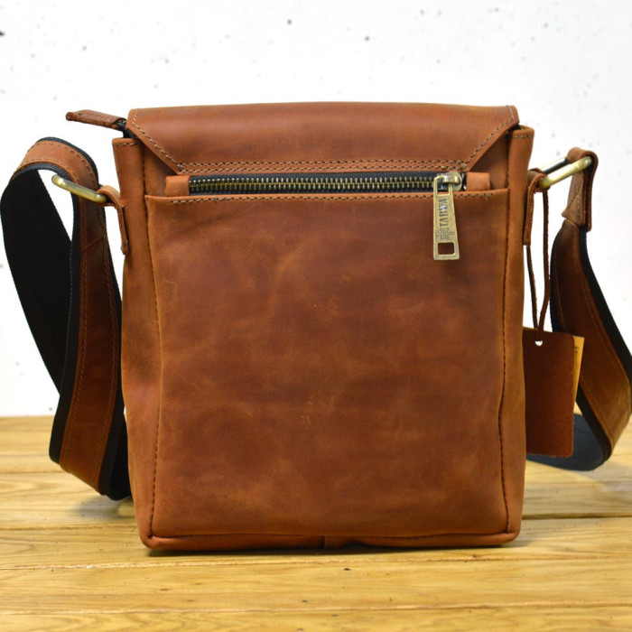 Кожаная сумка на плечо с 4 карманами рыжая TARWA RB-4150-4sa. Размеры сумки на плечо 23*19*5 см.