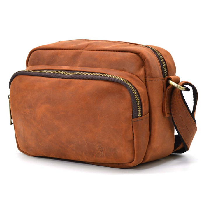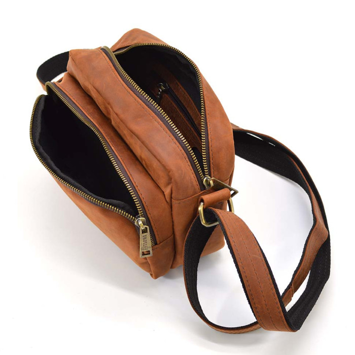 Небольшая мужская сумка через плечо 2 отделения TARWA RB-60125-3md коньячная. Изготовлена с натуральной лошадиной кожи. Аксессуар очень практичен и современный, предназначен для каждодневного использования, идеально подходит для ношения личных предметов (документов, ключей, телефона, кошелька).