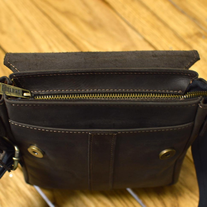 Кожаная мужская сумка через плечо коричневая TARWA RC-5447-4sa. Размеры сумки на плечо 23*19*5 см.