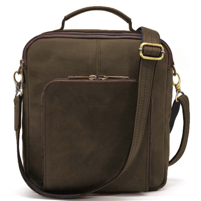 Мужская сумка на плечо с ручкой лошадиная кожа RC-6016-3md TARWA. Одно основное отделение плюс передний карман накладной, кожаная комфортная ручка, съемный кожаный ремень через плечо. Украинский бренд TARWA.