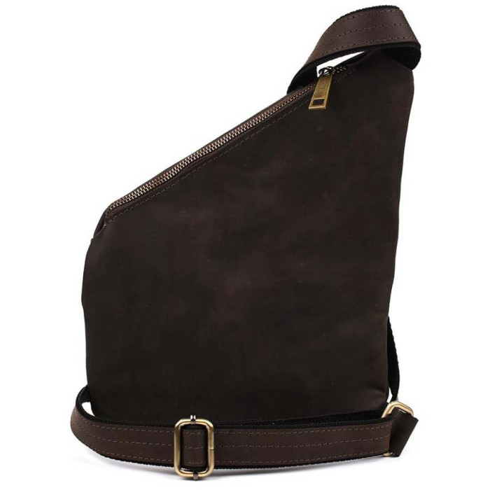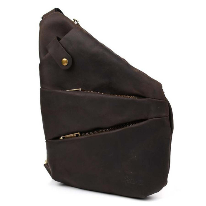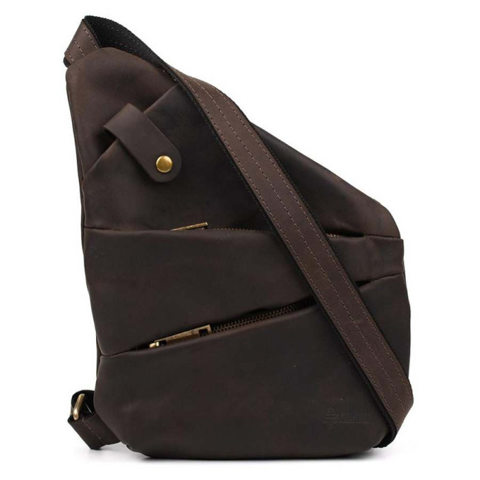 Мужская сумка через плечо, из натуральной матовой лошадиной кожи, коричневого цвета RC-6405-4lx, от украинского бренда TARWA. Модель будет полезна в поездках и путешествиях. Изделие выполнено полностью из лошадиной грубой толстой кожи, внутри тканевая подкладка. Имеет одно вместительное отделение, застегивающееся на молнию. Лицевую сторону сумки украшают два горизонтальных кармана с молниями, также сверху есть маленький карманчик с магнитной кнопкой. Данную модель можно позиционировать и как мини-рюкзак на одно плечо. Моно-шлейка выполнена из кожи с текстильной основой. Металлическая фурнитура и молнии. Аксессуар необычной формы, и максимальной функциональностью при носке.