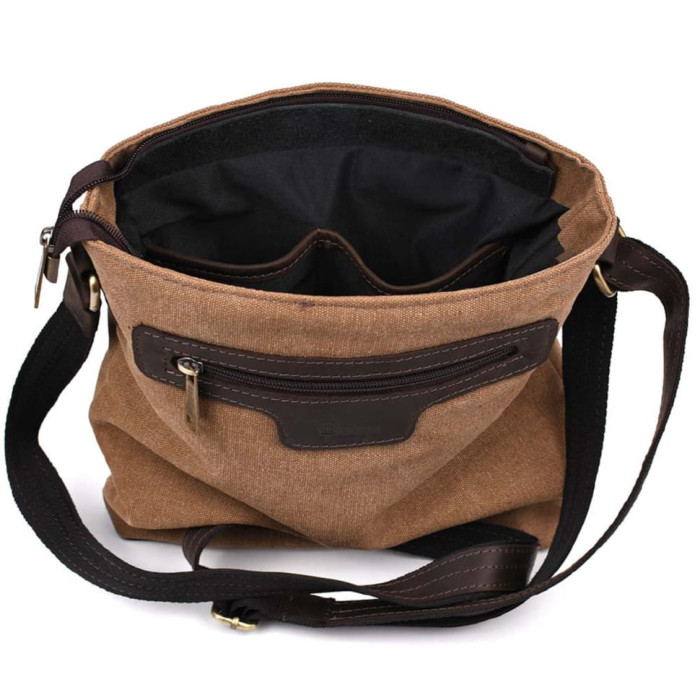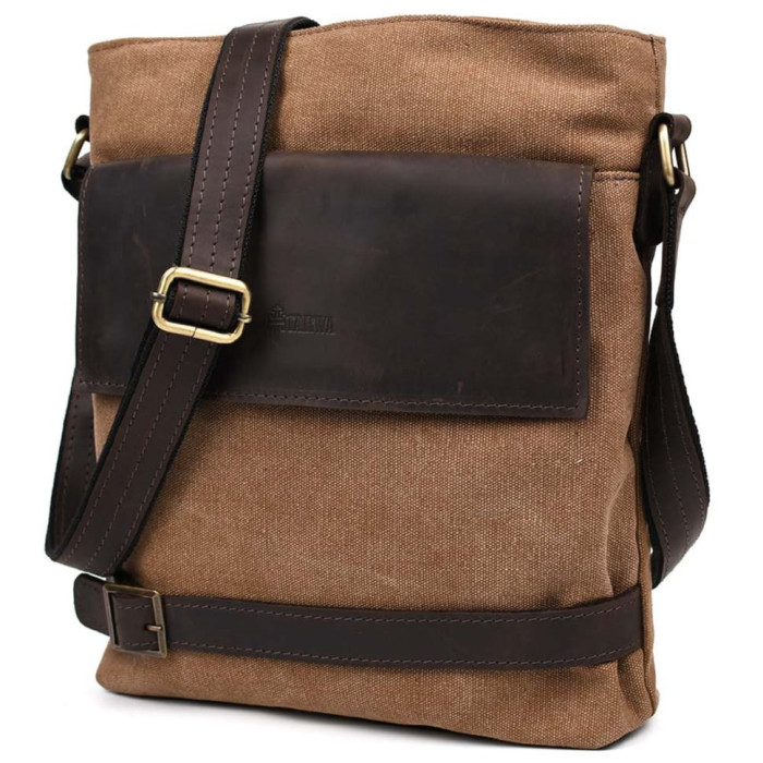 Сумка через плечо в комбинации кофейный канвас и лошадиной кожи RCc-0040-4lx TARWA