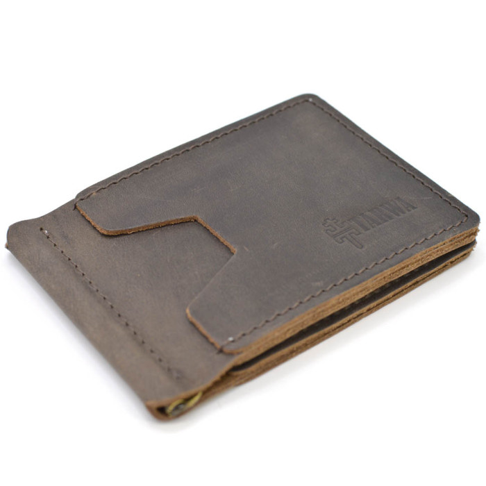 Стильный кожаный зажим для купюр от украинского производителя RCc-hold-001 TARWA в коричневом цвете.