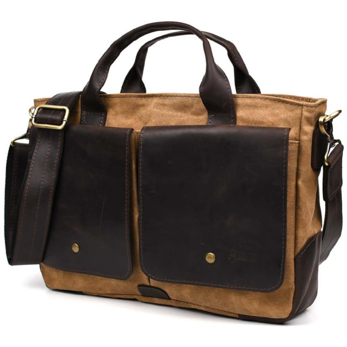 Мужская сумка из вощеного канваса и лошадиной кожи TARWA RCw-3990-3md
